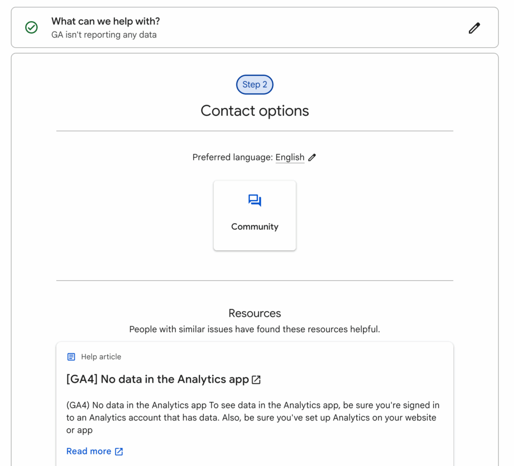 And that “contact option” was to post to the “help community,” aka the unmoderated forum for frustrated GA4 users.